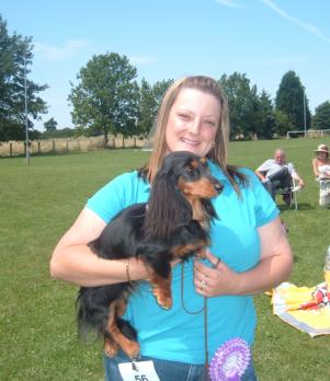 RESERVE BEST PUPPY IN SHOW Thomas, SHENALIGH SWEET SURPRISE Miniature Long Haired Dachshund